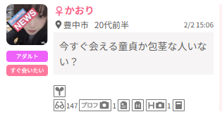 掲示板機能が充実しており、「今すぐ会いたい」などオフパコ目的の女性を見つけやすいのが特徴です。