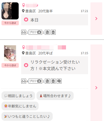 これらの機能では「今日暇してる」「今から会える人」といった投稿が毎日大量にアップされており、SNSで何ヶ月もかけてアプローチするよりも圧倒的に早く出会えます。